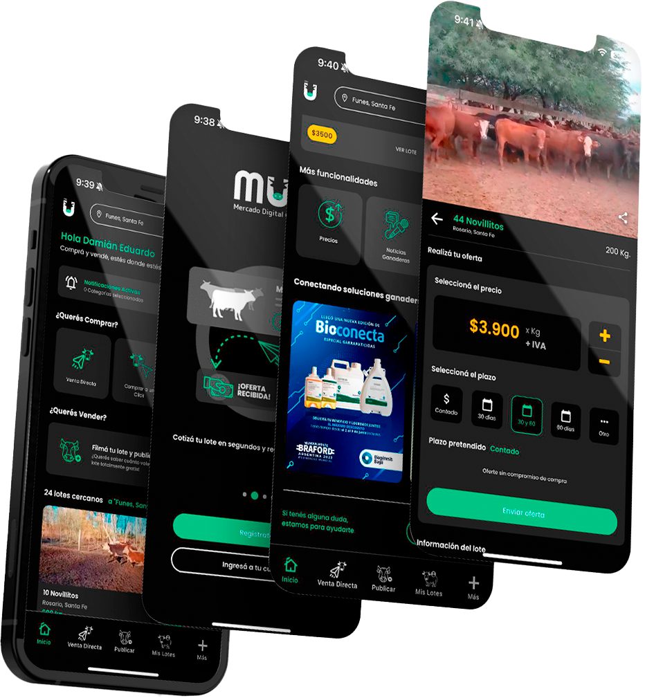 Muu es el mercado digital ganadero que conecta productores y consignatarios en un solo lugar. Permite vender y comprar ganado de forma simple, segura y transparente, ahorrando tiempo y ampliando tus oportunidades de negocio.
